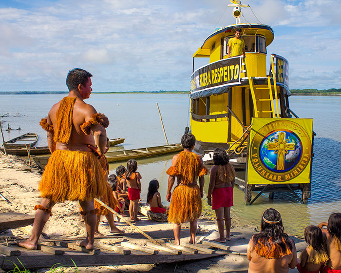 On this planet, it doesn’t get much more remote than deep in the Amazon Basin that cuts across South America, with indigenous communities dotting its banks. Reaching these tribes requires transport by boat, but not just any boat—a bright yellow Volunteer Minister River Barge brings the yellow-shirted Volunteer Ministers and their helping hands.